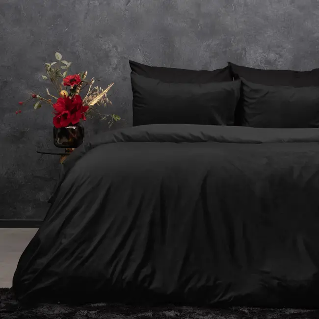 Velvet uni zwart dekbedovertrek is niet alleen mooi en comfortabel, maar zorgt tegelijkertijd ook voor een intieme, knusse sfeer in de slaapkamer.