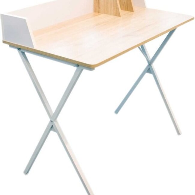 Dit witte bureau is perfect voor het organiseren van een efficiënte en ruimtebesparende werkplek. Afmeting: 90 x 85 x 50 cm.