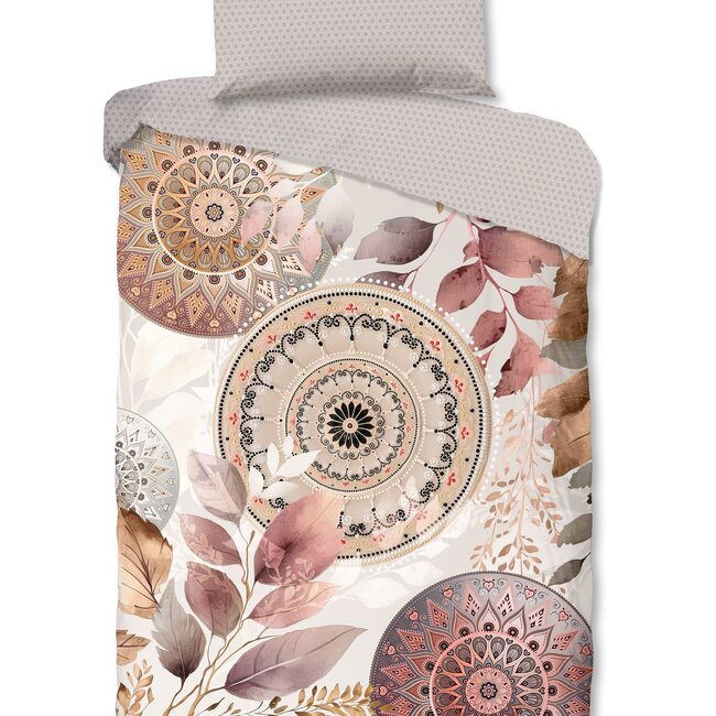 Het Afina dekbedovertrek van HIP Collection brengt rust en stijl in je slaapkamer. Het grijze dessin is versierd met grote bladeren en sierlijke mandala’s, uitgevoerd in warme aardetinten die zorgen voor een serene en ontspannen sfeer. Perfect om elke avond heerlijk tot rust te komen. De achterzijde is lichtgrijs en afgewerkt met een subtiele grafische print. De bijpassende kussenslopen zijn dubbelzijdig, zodat je eenvoudig kunt mixen en matchen voor een speels effect.
