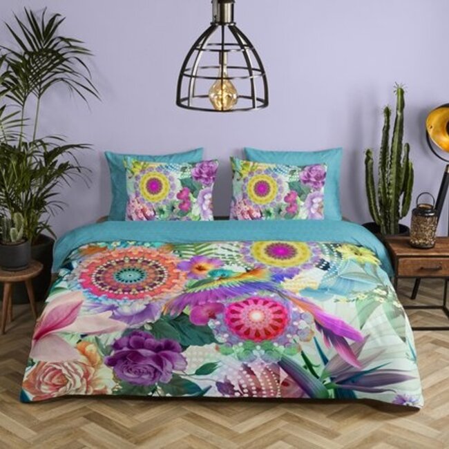 Op dit mooie dekbedovertrek Aviva van HIP vormen verschillende kleuren, mandala's en een papegaai dessins een betoverend geheel. Dit dekbed overtrek is gemaakt van katoen satijn Lees meer.