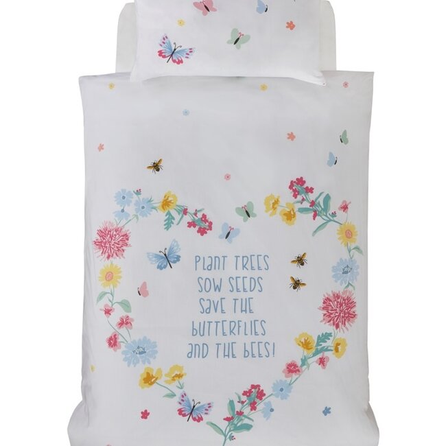 De levendige afbeeldingen van vlinders, bloemen en bijen creëren een rustgevende en vrolijke sfeer in je slaapomgeving. Het dekbedovertrek brengt de schoonheid van de natuur tot leven en zorgt voor een vleugje speelsheid en sereniteit.