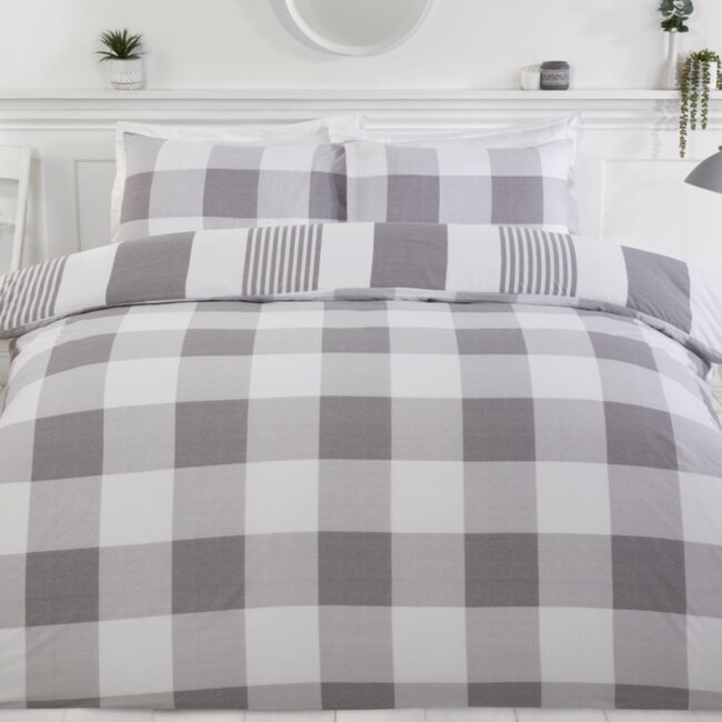 Purest Home dekbedovertrek Chambray grijs is een dekbedovertrek met blokken en strepen print