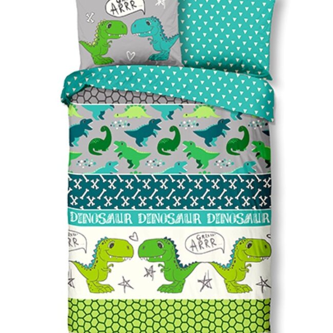 Good morning dekbedovertrek Dinosaur met een print van verschillende Dino's.
