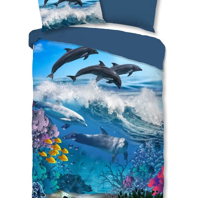 Duik in een onderwaterwereld met dit prachtige Good Morning dekbedovertrek! De levendige print met speelse dolfijnen en kleurrijke tropische vissen brengt een frisse en exotische sfeer in je slaapkamer.