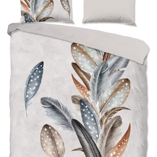 De print van veren in de kleur zand geeft het dekbedovertrek een subtiele en stijlvolle uitstraling. Het ontwerp voegt een vleugje natuurlijke charme toe aan je slaapkamer en creëert een rustgevende omgeving.