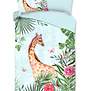 Good Morning dekbedovertrek met een afbeelding van een giraffe tussen bloemen en planten. Dit dekbed overtrek is gemaakt van 100% katoen. Lees meer.