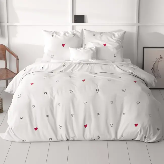 Op zoek naar een frisse, moderne upgrade voor je slaapkamer? Met het Dekbedovertrek Hearts Everywhere Wit uit de stijlvolle collectie van Sleeptime kies je voor direct comfort én een rustige uitstraling. Geschikt voor wie heerlijk wil uitrusten en ’s ochtends fris wakker wil worden, zonder gedoe. Het overtrek biedt een zachte touch, oogstrelend design en onderhoudsgemak — perfect voor een ontspannen nachtrust in stijl.