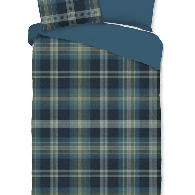 Het Pure Jan dekbedovertrek biedt een stijlvolle en tijdloze keuze voor je slaapkamer dankzij het klassieke ruitpatroon in blauw en groen. Het ruitenpatroon geeft een traditionele, maar toch frisse uitstraling, die goed past in verschillende interieurstijlen. De effen blauwe achterzijde biedt een rustige tegenhanger en maakt het mogelijk om variatie aan te brengen door de omslag aan te passen.