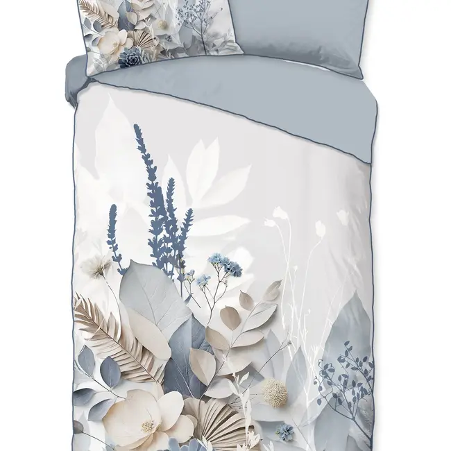 Met het Descanso Junte dekbedovertrek breng je een elegante en rustgevende sfeer in je slaapkamer. Het dekbedovertrek is uitgevoerd in hoogwaardig katoen‑satijn, met een stijlvolle bloemenprint in blauwe en beigetinten én een effen blauwe onderzijde. Deze combinatie van design en materiaal maakt het geschikt voor wie houdt van een tijdloos interieur met een luxe uitstraling. Bovendien is het praktisch in gebruik én onderhoudsvriendelijk – ideaal voor dagelijks gebruik zonder concessies op comfort.