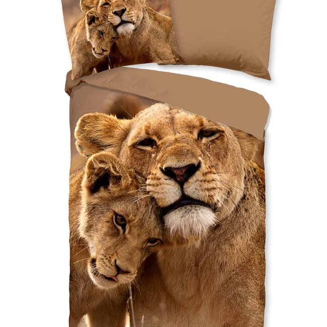 Pure dekbedovertrek Lovely lion is een dekbedhoes met een leeuwin en welp.