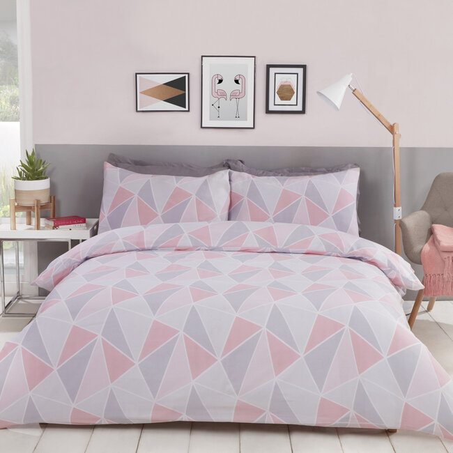 Finest Homeware dekbedovertrek Leo roze is een dekbedhoes met geometrische driehoeken.