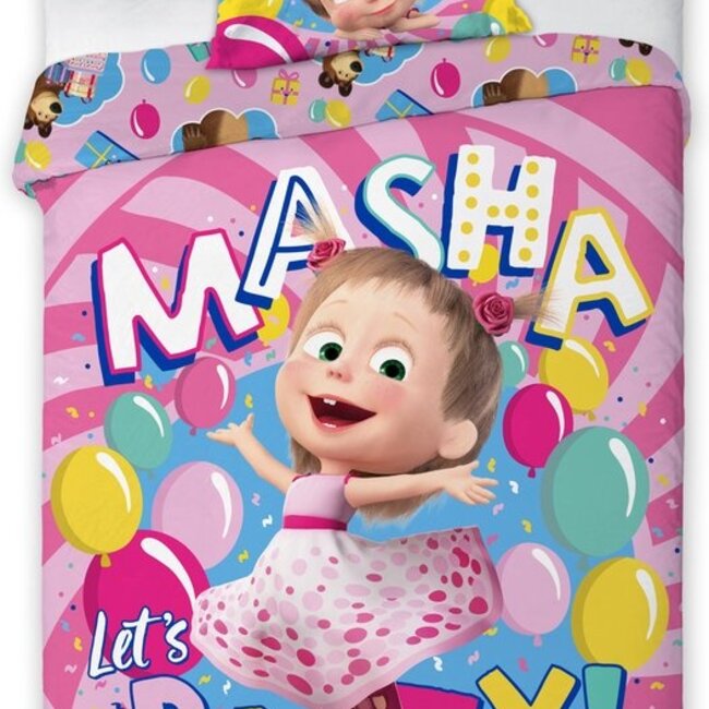 Masha en de Beer dekbedovertrek Let's Party - katoen - 140x200 + 70x90 cm
