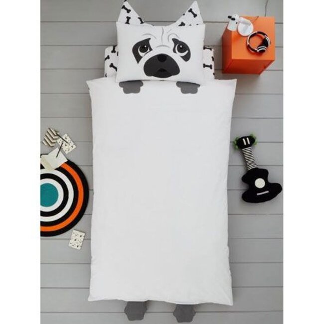 Kidz dekbedovertrek Mopshond met een grappige kussensloop en aan het dekbedovertrek zitten de poten en staart van de hond