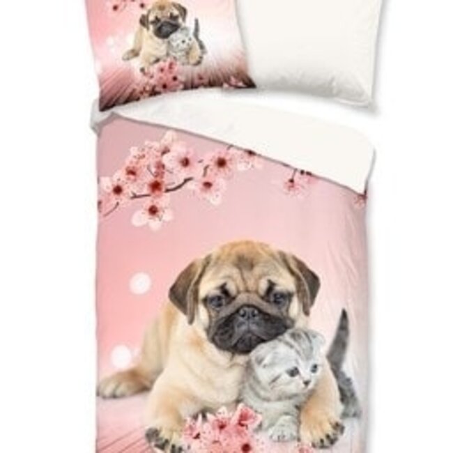 Pure dekbedovertrek Mopshond & kitten is een roze dekbedhoes met een schattige mopshond en poesje Dit dekbed overtrek is gemaakt van microvezel Lees meer.