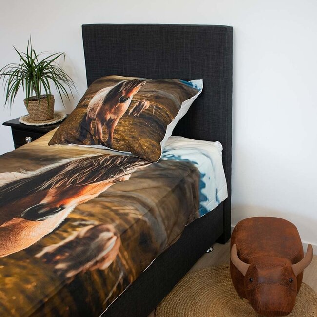 Het Newfoundland Pony dekbedovertrek is niet alleen een lust voor het oog, maar ook een genot om onder te slapen. Het is gemaakt van hoogwaardig materiaal dat zacht aanvoelt op je huid en zorgt voor een comfortabele nachtrust. De levensechte fotoprint maakt van je bed een echte eyecatcher en creëert een sfeer van rust en natuurlijke schoonheid.