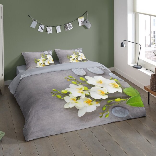 Pure dekbedovertrek Orchidee is een dekbedhoes met witte Orchideeën op een grijze ondergrond. Dit dekbed overtrek is gemaakt van 100% microvezel Lees meer.
