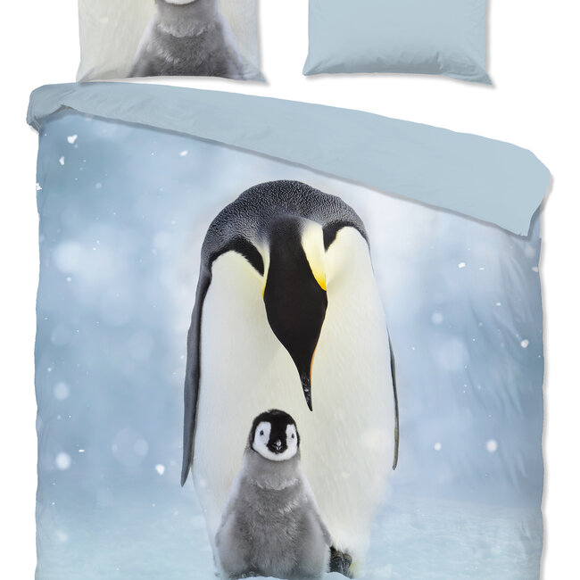 Good Morning dekbedovertrek Pinga flanel is een dekbed overtrek met een print van een Pinguïn met haar Pinguïnkuiken.