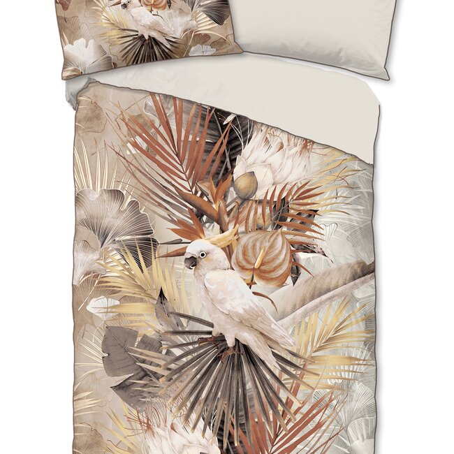 Descanso dekbedovertrek Pippa is een dekbedhoes met een planten print met een papegaai.