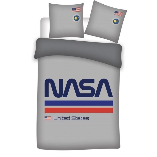 Nasa Dekbedovertrek grijs is een dekbedhoes met op de voorkant het Nasa logo en de Amerikaanse vlag.