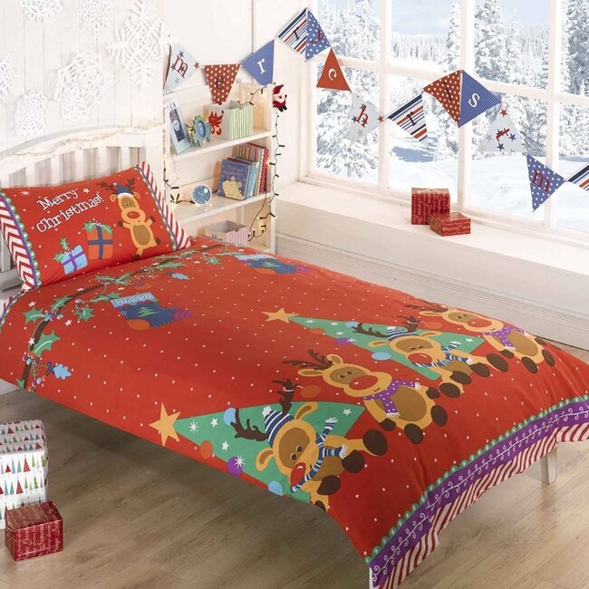 Dekbedovertrek kerst rendier is een dekbedhoes met de rendieren van de kerstman en cadeau's. Dit dekbed overtrek is gemaakt van blended katoen. Lees meer.
