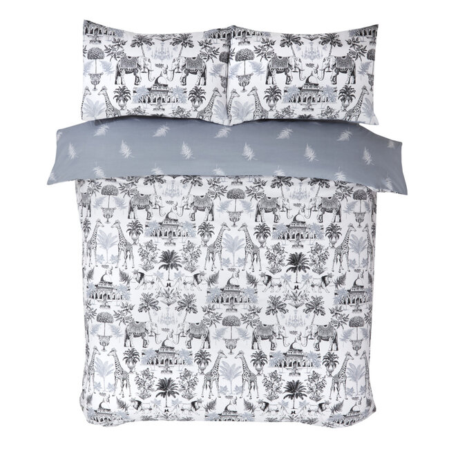Met dit dubbelzijdige safari/ jungle dieren dekbedovertrek kun je variëren in stijl en sfeer. De ene kant toont een levendige en gedetailleerde print van wilde dieren in hun natuurlijke habitat, terwijl de andere kant een subtieler ontwerp heeft, perfect voor een rustige en serene slaapomgeving.