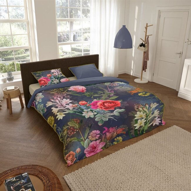 Met het Simone dekbedovertrek van het gerenommeerde merk Descanso breng je moeiteloos een romantische sfeer in je slaapkamer. Dit bloemen dekbedovertrek is een ware eyecatcher met zijn schitterende bloemenprint op een diepe petrolkleurige achtergrond.