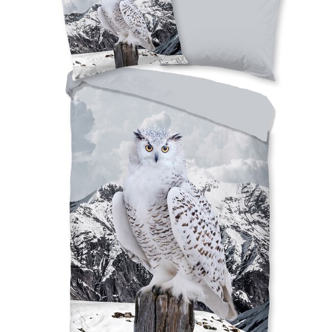 Good Morning Dekbedovertrek Sneeuwuil is een dekbed overtrek met een print van een mooie uil in een besneeuwd berglandschap.