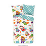Het Superhero dekbedovertrek van Good Morning zit boordevol superhelden-diertjes. Een aap, egel, pandabeer en kat dragen hun maskers en capes, klaar om de wereld te redden. Verschillende tekstballonnen met heldenkreten zweven om de dieren heen, tegen een lichte achtergrond. Met al deze superhelden om je heen val je vast met een gerust hart in slaap. De achterzijde heeft een lichtblauwe kleur met bliksemschichten.