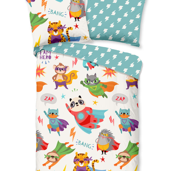 Good Morning kinderdekbedovertrek Superhero is een dekbedhoes met afbeeldingen van grappige super hero dieren. Het dekbed overtrek is gemaakt van 100% katoen Lees meer.