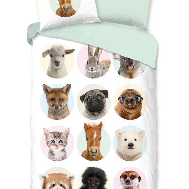 Good Morning dekbedovertrek met een afbeelding van jonge dieren zoals een pony, mopshond, aap en vos. Dit dekbed overtrek is gemaakt van 100% katoen. Lees meer.