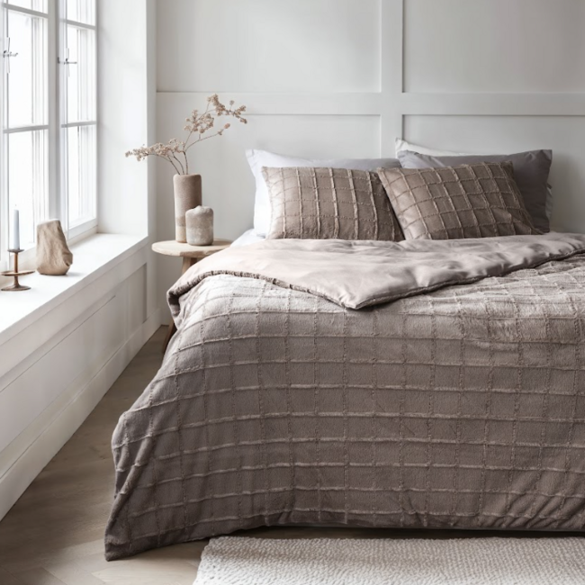 Ervaar het ultieme comfort met het Sleeptime Faux Fur Check dekbedovertrek. Dit dekbedovertrek is gemaakt van heerlijk fake faux fur stof aan de bovenzijde en soepele microvezel aan de onderkant. De combinatie van deze materialen zorgt voor een warm en knus gevoel, perfect voor de koude nachten. Daarnaast geeft de nep bont stof een luxe uitstraling aan je slaapkamer.