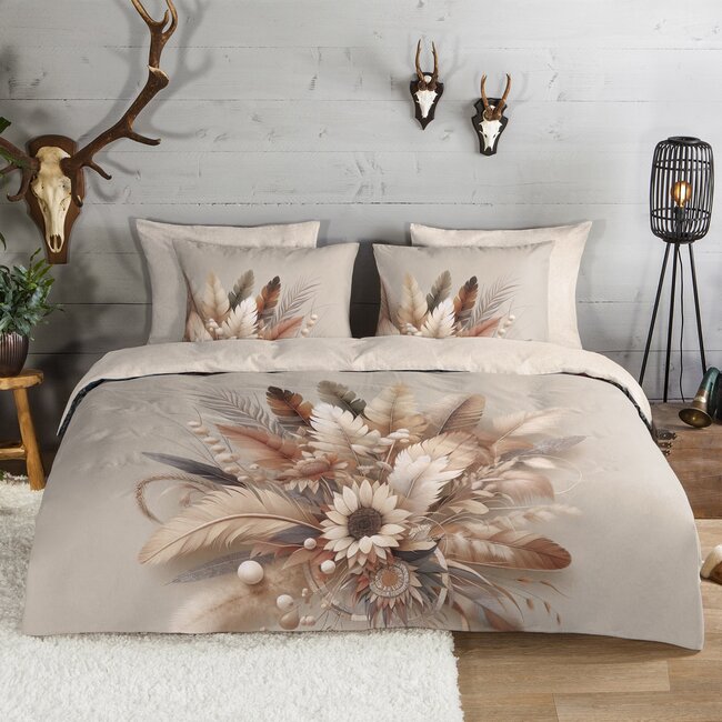 Breng een vleugje natuurlijke elegantie in je slaapkamer met dit stijlvolle dekbedovertrek. Het ontwerp met zachte veren, bloemen en warme aardetinten straalt rust en verfijning uit. Dit dekbed overtrek is gemaakt van 100% katoen flanel Lees meer.