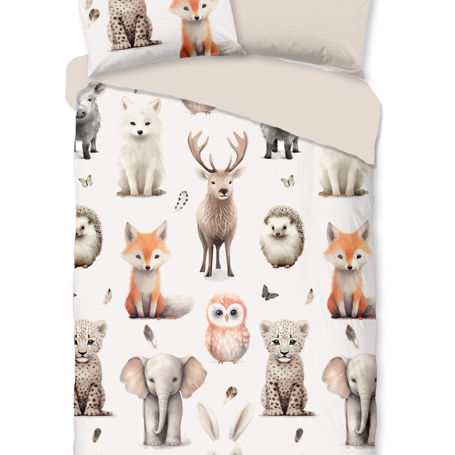 Breng de wondere wereld van dieren tot leven met dit vrolijke dekbedovertrek vol schattige bos- en savannedieren. Het ontwerp is rijk aan details en laat kinderen kennismaken met lieve vosjes, olifantjes, uiltjes en meer. Gemaakt van zacht katoen biedt het beddengoed optimaal slaapcomfort en ademend vermogen. De duurzame print blijft mooi en levendig, zelfs na veelvuldig wassen. Dit dekbedovertrek maakt van iedere kinderkamer een knusse en fantasierijke plek.
