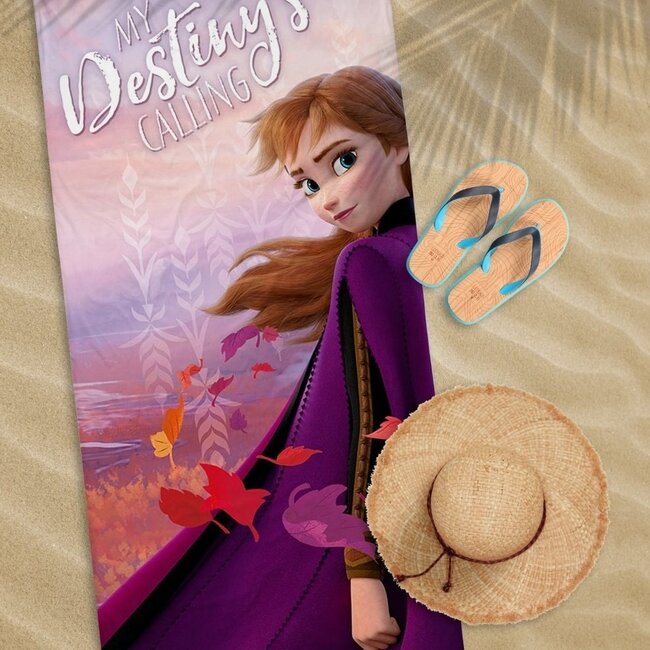 Frozen strandlaken met Elsa en de tekst My Destiny's calling. Afmeting van de handdoek is 70x140 cm en deze is gemaakt van 100% katoen Lees meer.