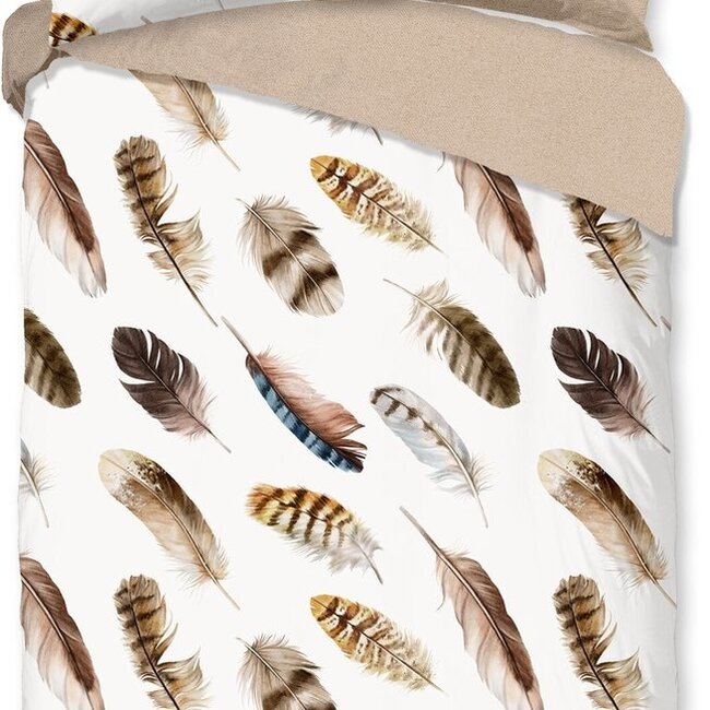Good Morning Dekbedovertrek Fedra is een prachtig zand kleurig dekbed overtrek met een print van veren.
