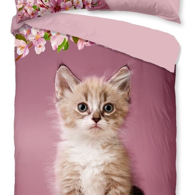 Good morning kinder dekbedovertrek kitten is een dekbedhoes met afbeelding van een schattige kitten tussen roze bloemen. Dit dekbed overtrek is gemaakt van 100% katoen. Lees meer.