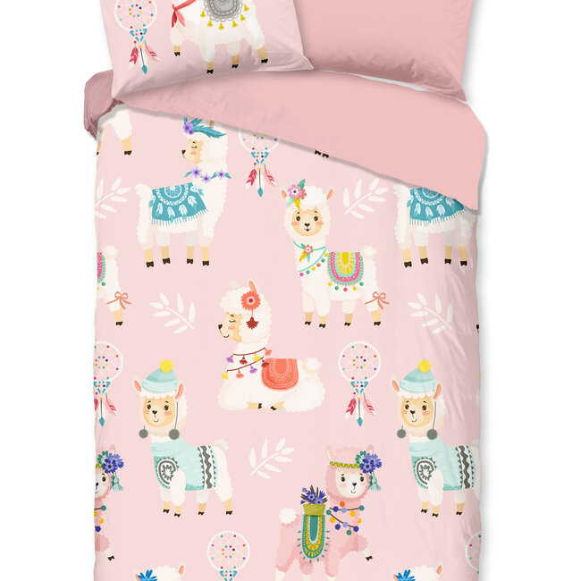 Het Flanellen Kinderdekbedovertrek Ladida van Good Morning is een schattig en speels dekbedovertrek dat perfect is voor kinderen. Het heeft een vrolijk ontwerp met grappige lama's op een roze achtergrond en een effen roze achterkant. Dit zorgt voor een kleurrijke en levendige uitstraling in de kinderkamer.