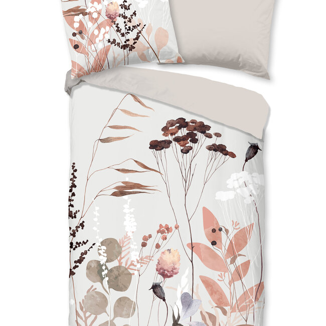Good Morning dekbedovertrek Moya is een planten en botanisch dekbed overtrek met een print van bloemen en planten en uni achterkant.