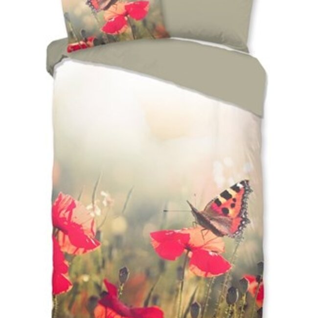 Het Good Morning zomerdekbedovertrek Poppies is een dekbedovertrek met een prachtige print van rode bloemen en een vlinder. Aan de andere zijde van het dekbedovertrek is het effen van kleur. Dit dekbedovertrek wordt geleverd met een bijpassende kussensloop van 60x70 cm.