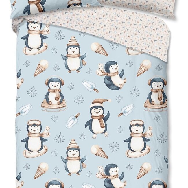 Good morning flanel dekbedovertrek Jani is een dekbedhoes met een print van Pinguïns en ijsjes. Dit dekbed overtrek is gemaakt van 100% katoen flanel. Lees meer.