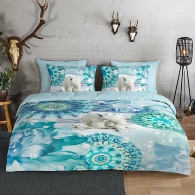 Het dekbedovertrek Seppo van HIP is een waar kunstwerk voor in de slaapkamer. Met zijn combinatie van verschillende blauwtinten, mandala's en ijsberen creëert dit overtrek een betoverend en intrigerend geheel. De mandala's voegen een spirituele en rustgevende sfeer toe, terwijl de ijsberen een vleugje speelsheid en winterse charme brengen.