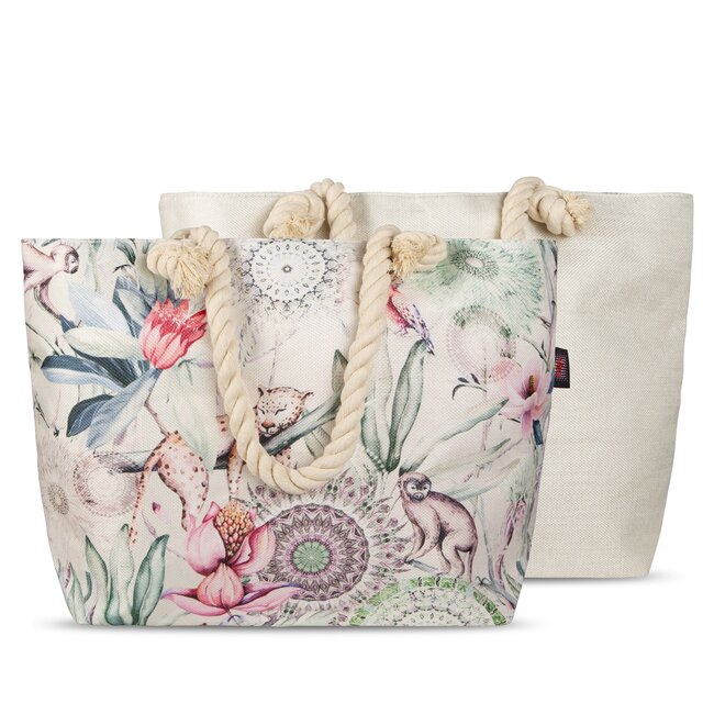 HiP strandtas met afbeelding van mandala's, bloemen een een aapje. Handig om mee te nemen als u naar het zwembad of strand gaat.