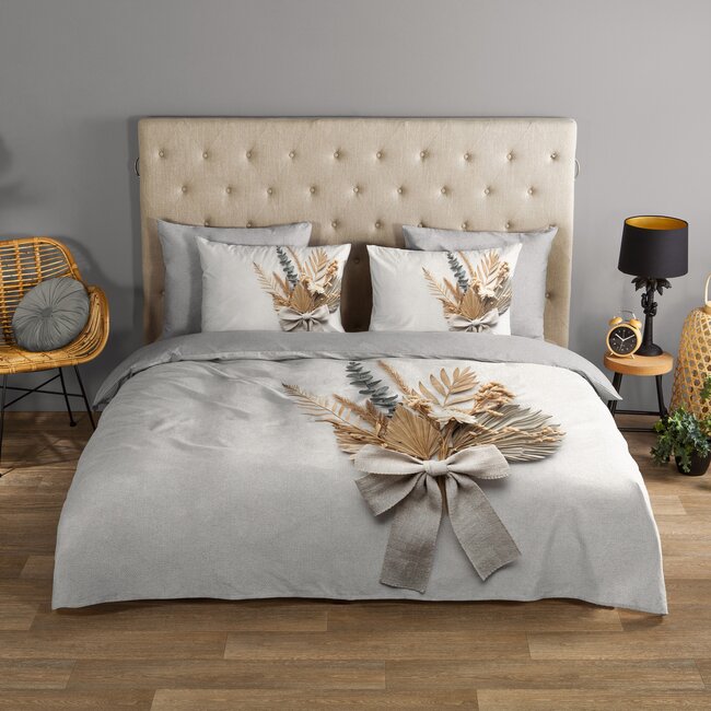Geef je slaapkamer een stijlvolle en natuurlijke uitstraling met dit elegante dekbedovertrek. Het ontwerp met een kunstzinnig boeket van gedroogde bladeren en bloemen straalt rust en verfijning uit. De zachte, neutrale kleuren passen moeiteloos in een modern of landelijk interieur. De effen achterzijde biedt een kalme balans en versterkt de serene sfeer van het geheel. Dit dekbedovertrek is de perfecte keuze voor wie houdt van eenvoud met een vleugje natuurlijke charme.
