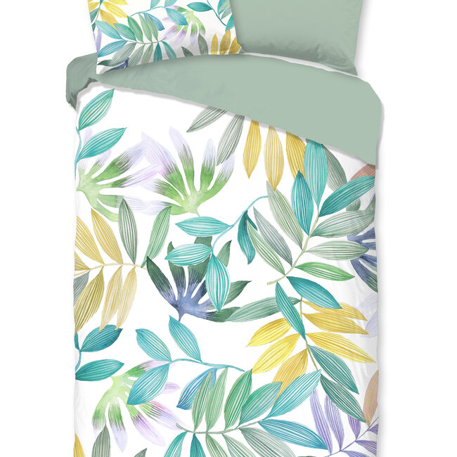 Breng de tropische sfeer direct naar je slaapkamer met het prachtige dekbedovertrek Good Morning Marcus Multi, gemaakt van 100% katoen. Dankzij het frisse blad- en aquarelmotief in zachte groen-, blauw- en geeltinten past dit overtrek perfect in een botanisch of modern interieur. Het is ideaal voor iedereen die comfort én stijl wil combineren, of je nu een eenpersoons- of lits‑jumeaux‑bed hebt. Daarbij profiteer je direct van het ademend vermogen en de natuurlijke zachtheid van katoen — lekker fris slapen gegarandeerd!