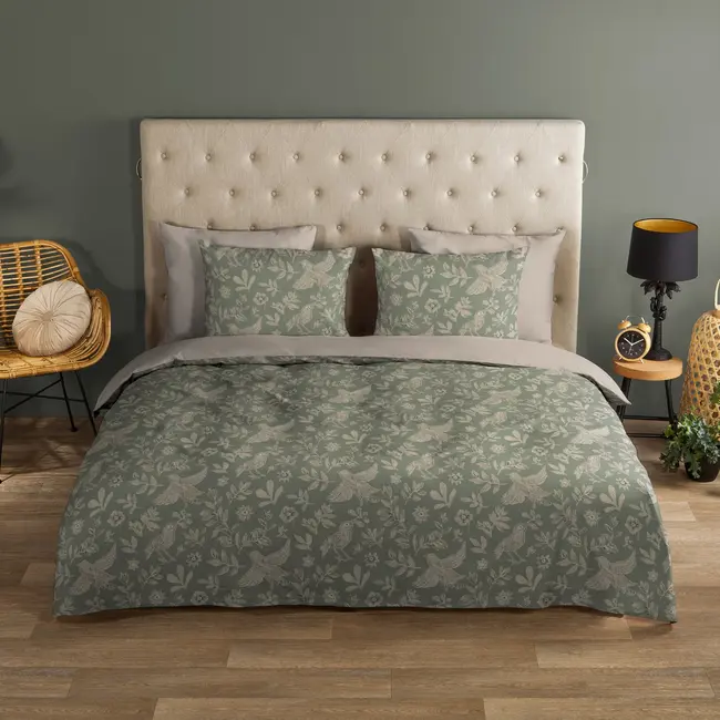 Breng rust en natuurlijke elegantie in je slaapkamer met het Good Morning dekbedovertrek Odette. Met zijn subtiele groene tint en verfijnde taupekleurige illustraties van bladeren en vogels zorgt dit dekbedovertrek voor een serene en uitnodigende sfeer. Dankzij het hoogwaardige katoen slaap je koel, fris én comfortabel — ideaal voor wie waarde hecht aan kwaliteit én stijl. Odette past perfect in slaapkamers met een natuurlijke, rustige of tijdloze inrichting.