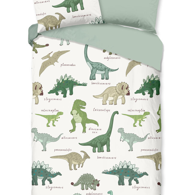 Ga op avontuur in de prehistorie met dit stoere dekbedovertrek vol kleurrijke dinosaurussen. Van T-Rex tot Stegosaurus, elke dinosaurus is duidelijk afgebeeld met naam en speels karakter. Gemaakt van 100% Katoen. Lees meer.