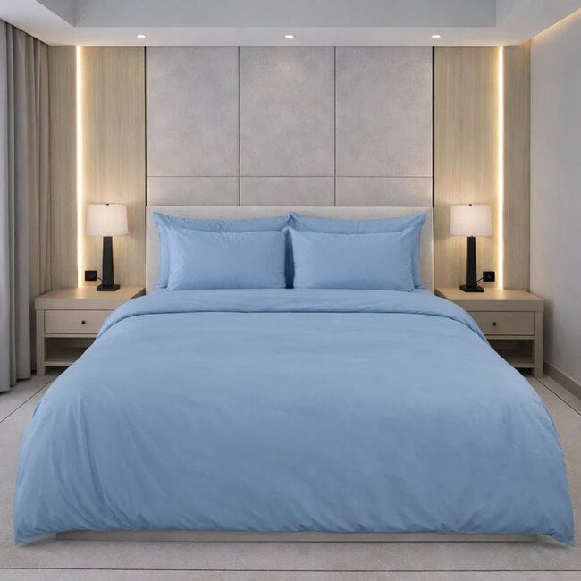 De effen blauwe kleur zorgt voor een kalme en evenwichtige uitstraling in de slaapkamer. Door het minimalistische ontwerp laat dit dekbedovertrek zich makkelijk combineren met andere kleuren en materialen. Denk aan lichte tinten voor een frisse look of juist warme accenten voor extra sfeer. Het tijdloze karakter maakt het een duurzame keuze binnen verschillende woonstijlen. Zo creëer je eenvoudig een harmonieuze en verzorgde slaapomgeving.