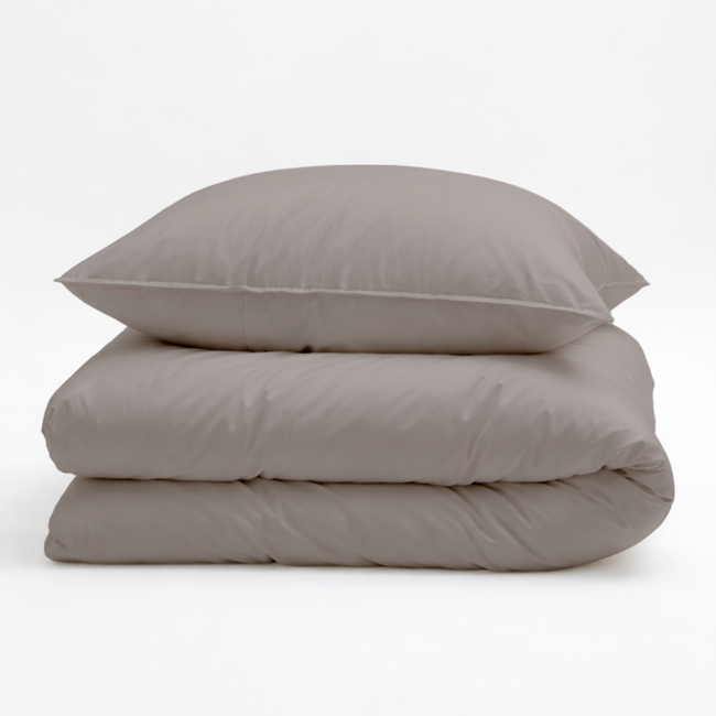 De warme steentint maakt dit dekbedovertrek veelzijdig in gebruik. Het past goed binnen zowel moderne als meer klassieke interieurs. Combineer het met lichte kleuren voor een frisse uitstraling of juist met donkere tinten voor extra diepte. Ook natuurlijke materialen zoals hout en katoen sluiten hier mooi op aan. Dankzij het effen design blijft het geheel rustig en overzichtelijk. Hierdoor kun je eenvoudig variëren met accessoires zonder dat het druk oogt. Zo creëer je een slaapkamer die in balans is en prettig aanvoelt.