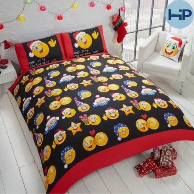 Het Kerst dekbedovertrek Smileys is een feestelijke dekbedhoes met allerlei smileys in kerstsfeer. Dit vrolijke overtrek toont verschillende smiley-gezichtjes die passen bij de gezelligheid en vreugde van de kerstperiode.
