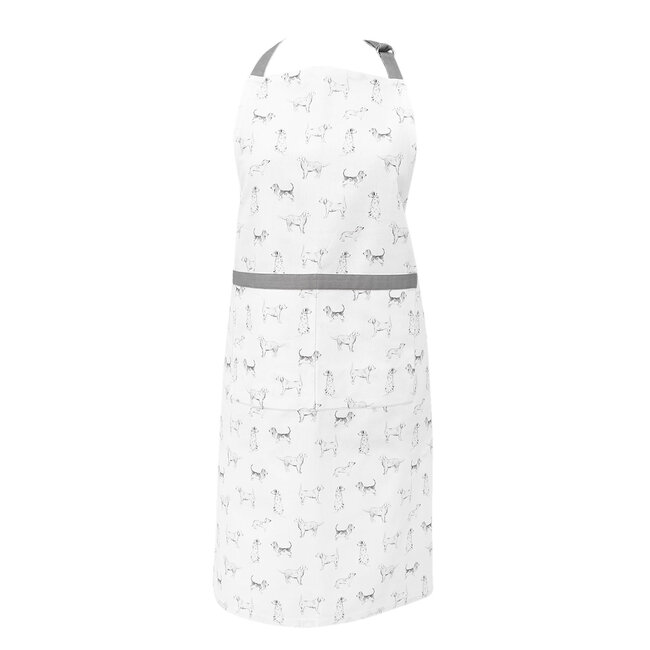 Keukenschort van katoen van het merk Clayre & Eef in wit met grijze honden in landelijke stijl met een romantische uitstraling uit de keukentextielserie Dog Friends. Lees meer.